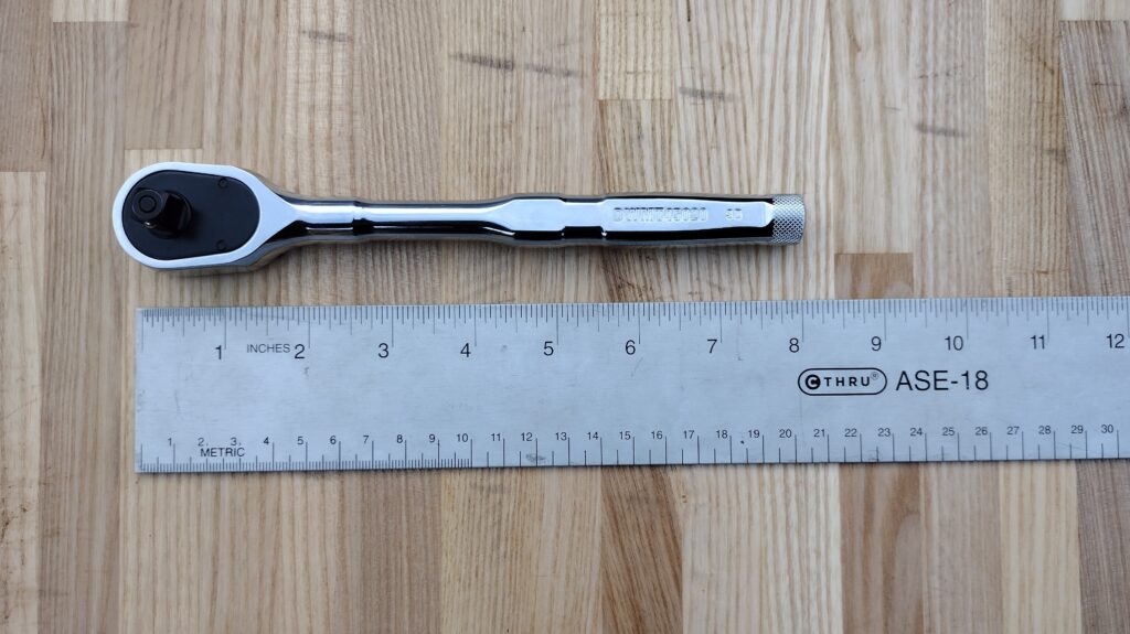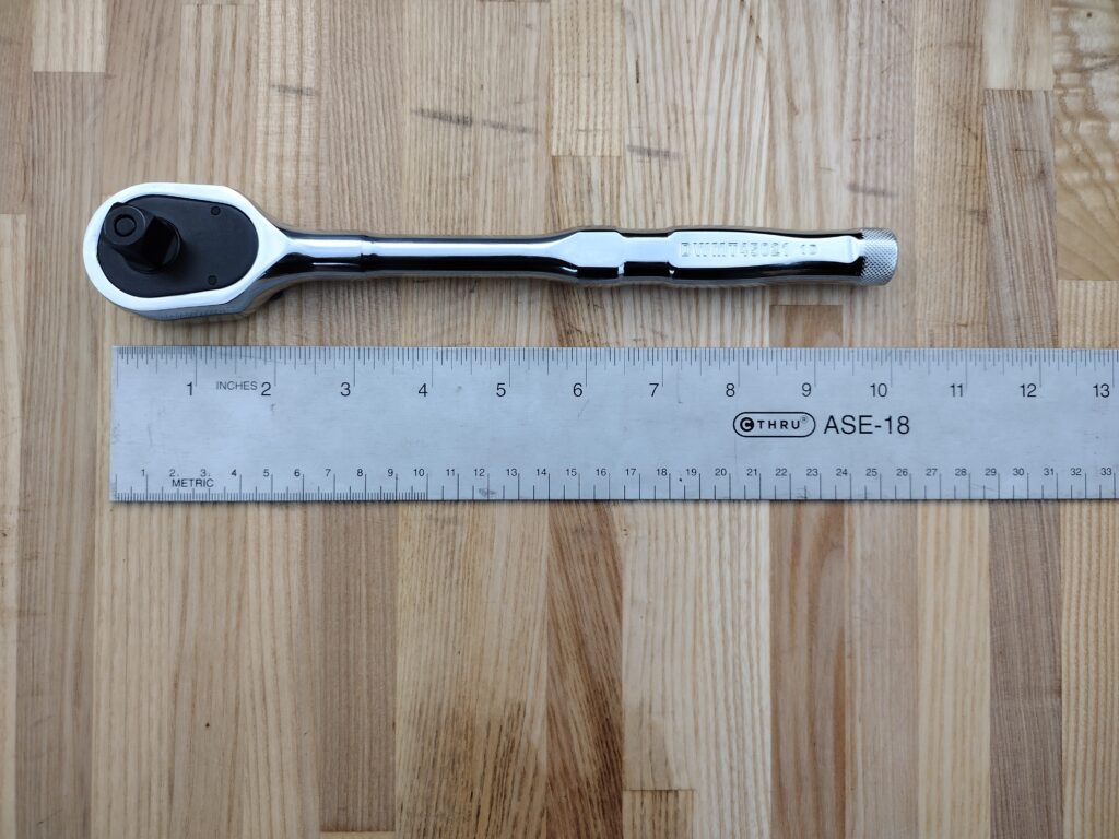 The 144 tooth count provides smooth articulation and it also assists with movement capability especially in confined spaces. A great example are the engine bays of modern vehicles. As the compartments steadily decrease in size the value of accessibility and control grows exponentially. All three of the new generation ratchets are slightly longer than the previous generation. The 1/2 inch ratchet measures at 12.7 inches in total length. The 3/8 inch drive measures 9.9 inches and the 1/4 version clocks in at 8.6 inches.
