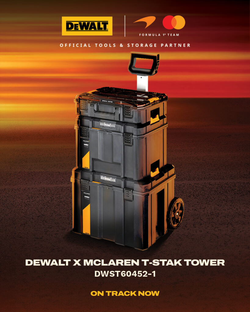 The 2026 Formula 1 season is getting underway and simultaneous to that DeWalt is releasing their latest offering of tools and storage components that coincide with their years long partnership with the McLaren Racing Team. This year’s product lineup features McLaren specific Impact Wrenches, an Angle Grinder as well as several T-Stak Modular Storage components. All of the upcoming products are Special Features with badging to commemorate the latest season of Formula 1 racing as well as the nearly half decade long partnership.